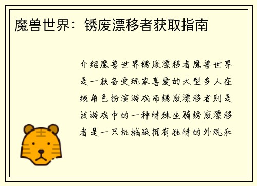 魔兽世界:锈废漂移者获取指南