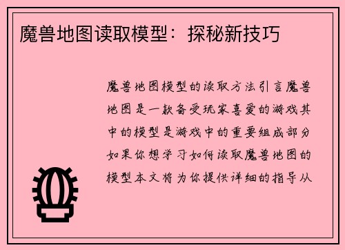 魔兽地图读取模型:探秘新技巧